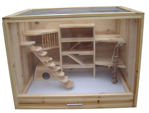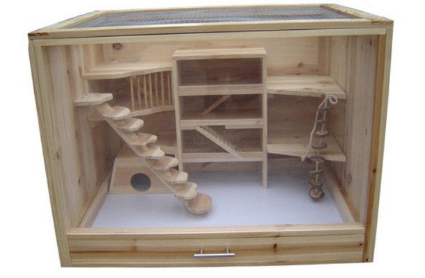 Данный тип клеток в основном изготавливается из древесины. Такие изделия выглядят более эстетично по сравнению с металлическими аналогами и гораздо больше нравятся грызунам. Это вполне объяснимо. Рассмотрим все преимущества деревянных витрин: