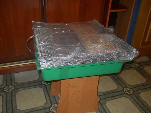 | 1 | Сначала убираются боковые стенки шкафчика, на их место устанавливается вольерная сетка нужного размера. |