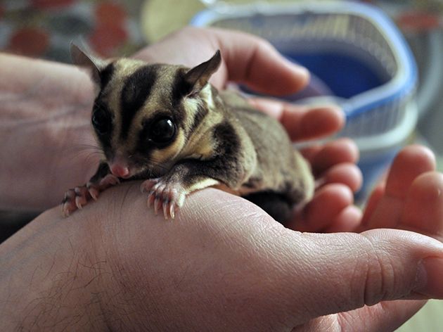 С аккуратностью заводить сахарного летающего поссума стоит в квартире, где живет кошка, собака и птицы. Сжимать и насильно брать сахарного поссума на руки небезопасно. Зверек может испугаться и укусить.