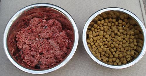 При обучении собаки к сухим кормам в начале можно добавлять немного мяса или сыра, однако доля натуральных продуктов не должна превышать 10% от общего объема пищи в день. В дальнейшем смешивание не рекомендуется, так как пищеварительная система питомца должна адаптироваться к одному типу корма, а не менять его каждый раз с натурального на сухой.