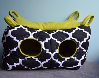 Удобные и практичные устройства, легко моются, имеют крепления, которые удобно зацепить за прутья клетки. Но нужно учесть, что в таком укрытии зверьку может быть жарко и душно летом.