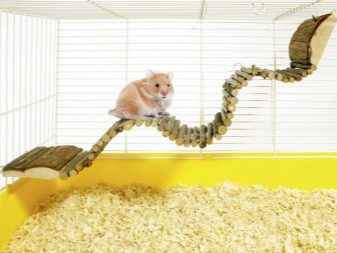 Качели для хомяка изготавливаются аналогичным образом. Для этого понадобятся только прочные бусы, чтобы подвесить конструкцию. Лестницу для хомяка также можно сделать быстро и просто. Перекладины-ступеньки приклеиваются поперек продольных основ. Лестница может быть выполнена как из палочек от мороженого, так и из плотного картона. Добавив крепкую веревку, можно создать подвесной мостик.