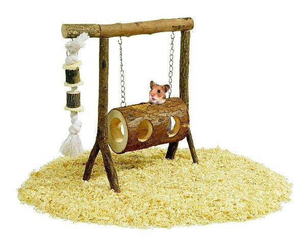Хомячки – замечательные акробаты, но для них спуск вниз всегда представляет собой падение. Эти две характеристики важно учитывать при создании игрушек для хомяков своими руками. В качестве развлечений отлично подойдут горки, качели, лестницы и мостики. Главное условие для таких конструкций – это безопасность. Высота любого сооружения должна быть такой, чтобы при падении питомец не получил травмы. Лестницы и горки не должны быть слишком крутыми – необходим плавный спуск.