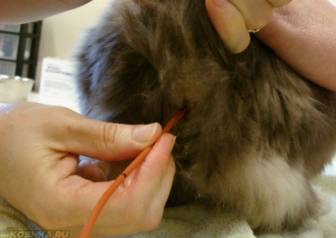 - Для улучшения всасывания раствора рекомендуется прижать хвост к заднему проходу и удерживать кошку в стоячем положении около десяти минут.