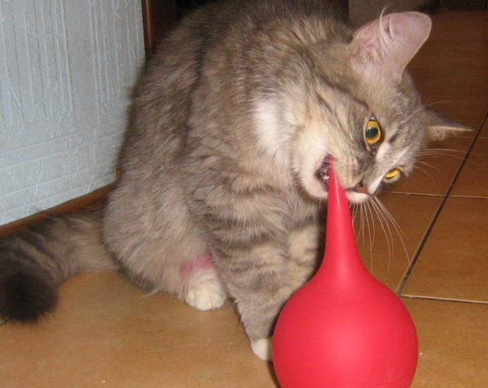 Специальная резиновая груша для спринцевания. Лучше всего приобрести в аптечном киоске грушу с резиновым наконечником. Такая модификация не травмирует анальное отверстие животного при введении приспособления. Объем груши зависит от возраста пациента. Для маленького котенка подойдет спринцовка на 150 — 200 мл. Если кот взрослый, оптимальный объем груши – 300 мл.