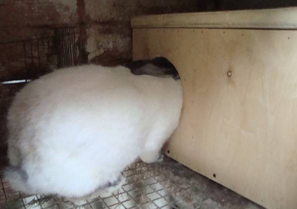 Оптимальная площадка по полу может быть равна 30 на 50 см и высотой в пределах 30 см. Понадобится сделать отверстие для лаза с 17 см. диаметром, его отворачивают в сторону от общего входа в клетку. Самки особенно тревожатся перед окролом, становятся агрессивными к крольчатам из-за малейшего дискомфорта, дальнейшее поведение просто непредсказуемо, если человек не создаст необходимых условий.