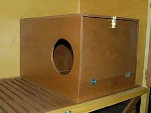 Еще одно важное требование к гнезду — это легкость в уборке, поэтому в конструкции должна быть предусмотрена верхняя или боковая дверца для удобного доступа.