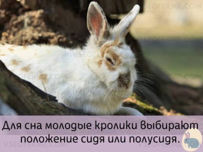 В дикой природе зверьки крайне осторожны и всегда должны быть начеку. В период отдыха любое животное наиболее уязвимо для хищника. Поэтому, кролики приспособились спать сидя, с открытыми глазами, слегка пошатываясь. Во время отдыха веки полностью не смыкаются. Глаза могут быть слегка прищуренными, но не закрыты, чтобы контролировать окружающую обстановку.