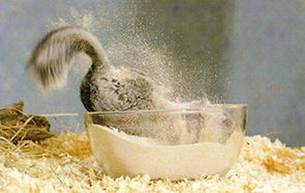 В купалку для шиншилл рекомендуется насыпать вулканическую пыль слоем 5-6 см. Купание следует проводить раз в 2-3 дня, уделяя этому не более часа, в зависимости от активности животного. Оставлять купалку на длительное время не стоит, иначе шиншилла может использовать ее как туалет. После каждой процедуры песок необходимо просеять и добавить свежий. Полную замену песка следует производить каждые 12-15 купаний. В песок можно добавить немного серы для профилактики кожных заболеваний. При замене песка купалку нужно тщательно вымыть и высушить. Раз в месяц ее следует дезинфицировать. Важно, чтобы в песок не попадала влага, так как это может привести к появлению паразитов.