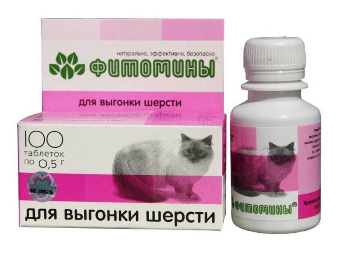 Фитомины для кошек. Это растительный комплекс в форме таблеток, который должен способствовать выведению шерсти. Я время от времени даю своему коту фитомины для шерсти, но только как дополнение. На мой взгляд, они не работают в одиночку.