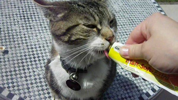 Если у вашей кошки есть кожное заболевание, из-за которого она активно вылизывается, в период лечения также стоит давать ей мальт-пасту.
