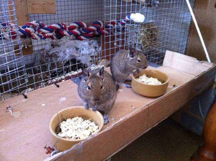 Согласно отзывам, грызуны дегу неприхотливы в уходе и содержании, при этом они очень воспитанные. Чилийская белка никогда не сделает «туалетное дело» на руках своего хозяина. Питомец будет стараться вырваться и добежать до своей клетки, чтобы справить нужду в отведенном для этого месте.