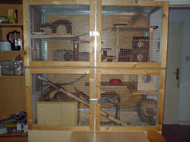 Всю конструкцию следует крепить на надежный каркас. Если есть возможность, то лучше всего использовать не деревянные, а металлические детали — алюминиевый профиль к примеру. Дегу грызет клетку, от этого никуда не деться. И лучше, чтобы она была надежной и безопасной для зверька изначально.