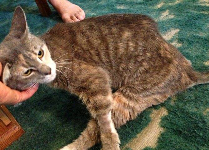 4. При повреждениях позвоночника у кошки висят лапы и она не может двигаться.