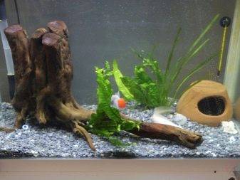 На дне резервуара необходимо предусмотреть укрытия, которые можно красиво оформить из коряг, керамических горшков, амфор, домиков, арок и кокосовых скорлупок, а также больших камней.