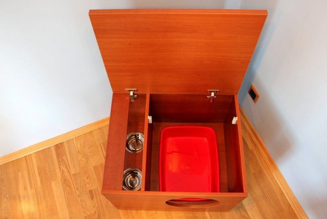 Туалеты для кошек закрытые могут быть встроены в тумбочку, тогда они легко впишутся в ваш интерьер