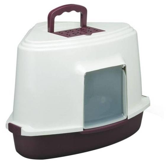Закрытая модель с угольным фильтром от бельгийского производителя отличается оригинальным дизайном и угловой формой, что позволяет экономить пространство в небольших помещениях. Она идеально подходит для домашних животных среднего размера, вес которых составляет около 3-4 кг.