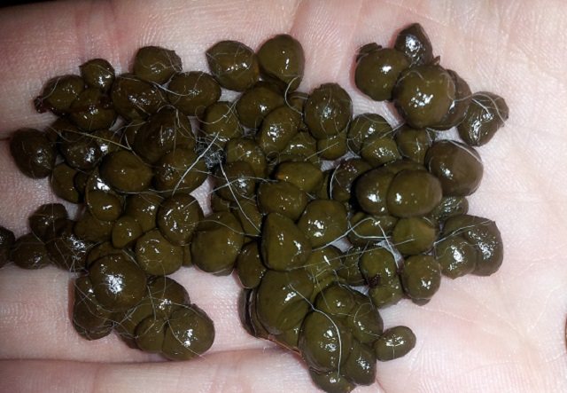 Фото. Нормальный ночной кал (цекотроф) у кроликов. Он имеет блестящую, влажную и мягкую текстуру. Это считается нормой.