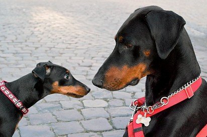 Цвергпинчер и доберман