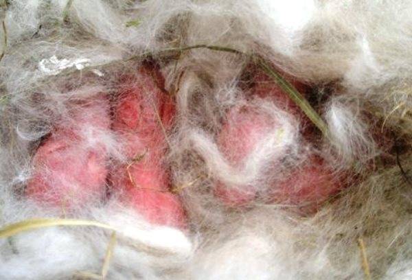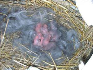 - Помещаем брошенных крольчат в центр нового гнезда, располагая их между родными детёнышами.