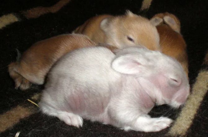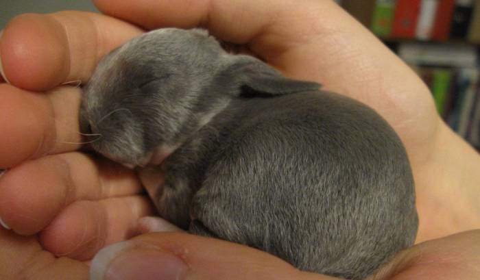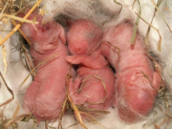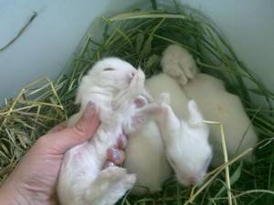 Перед тем как брать малышей на руки, следует убрать запах человека и вынести на 10 минут крольчиху из клетки (в противном случае есть риск, сто она откажется выкармливать потомство).