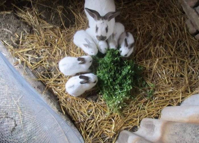 Именно поэтому перед тем, как рождаются крольчата, животновод должен застелить всю клетку толстым слоем соломы.
