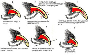 Когти собаки состоят из омертвевшей части и внутреннего слоя — пульпы с нервными окончаниями и кровеносными сосудами. Пульпа растет вместе с когтем. Поэтому, если стрижка не производилась долгое время, процедуру проводят аккуратно и в несколько этапов.