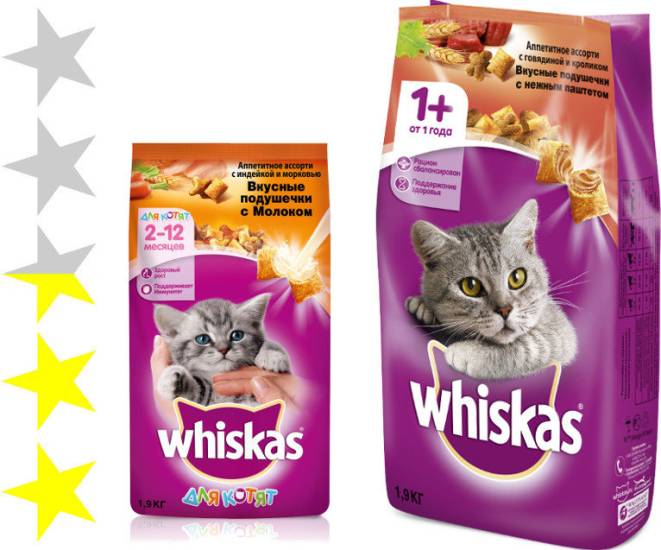 Однако для сознательных владельцев кошек недостатки перевешивают преимущества, и они вряд ли выберут Whiskas для своего питомца. Ведь у этого корма: