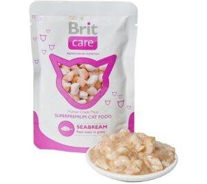 Brit Care Cat. Эта серия включает как влажные консервы, так и паучи — корма в небольших пакетах, которые стоят дороже, чем сухие корма и консервы в банках.