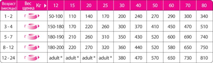 - Линейка включает корма для щенков и подростков, а также для взрослых собак.