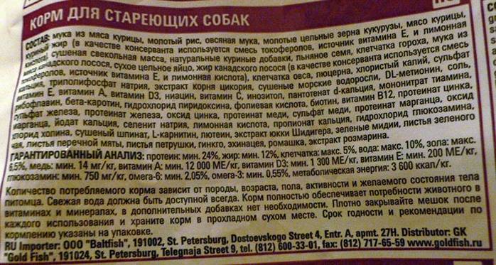 Среди прочих компонентов можно встретить привычные для собачьих кормов ингредиенты, такие как молотый рис, молотые цельные зерна кукурузы, клетчатка гороха и так далее. Тем не менее, многие корма для собак не могут похвастаться таким разнообразием в составе и обычно имеют гораздо более скромный набор ингредиентов. Для сравнения, обратите внимание на состав корма Eukanuba (супер премиум) или корма Роял Канин (премиум).