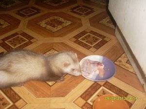 Кормить фретку следует теми продуктами, которые она предпочитает.