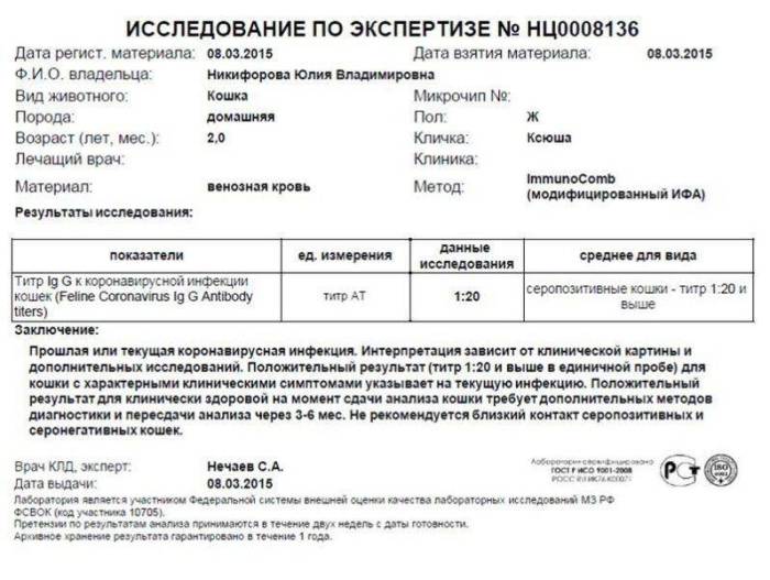 Мои знакомые, чья кошка заболела так называемой «коронкой», сдавали анализы сразу в нескольких клиниках. Дело в том, что в некоторых ветеринарных больницах проводят не все исследования, а только одно или два. Так ПЦР они сдавали в одной клинике, а титры — в другой. Это вышло накладно, но оказалось, что результаты всех анализов получились разными. В самой дорогой клинике сравнили все эти результаты и обобщили картину — кошка носитель вируса.