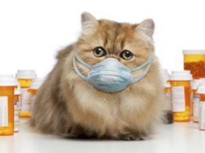 Не следует позволять вашему усатому другу общаться с заболевшими животными.