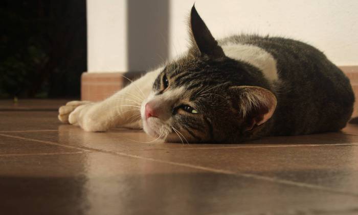 - Интенсивные болевые ощущения в разных частях тела, особенно в области головы (уши, зубы). Кот может проявлять малоподвижность и занимать удобное положение, иногда наблюдается дрожь.