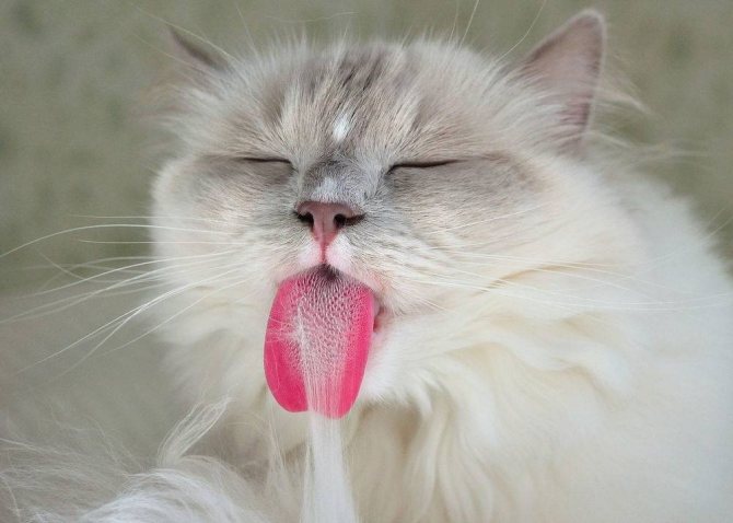 Обычно здоровые кошки не показывают свой язычок и держат его внутри пасти. Несмотря на это, демонстрация этого органа далеко не всегда указывает на патологию и может сопровождать абсолютно безобидные действия.