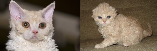 | Девон-рекс | Очень большие, низко посаженные, широкие у основания, с закругленными кончиками | Кудрявая шерсть, стройное тело, большие глаза |