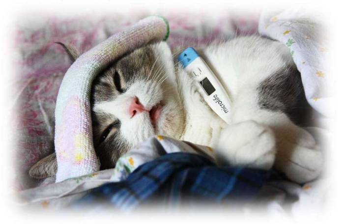 Простая простуда, как правило, проходит за несколько дней. Однако специфичная инфекция на фоне простуды развивается в организме котенка стремительно. Если температура не падает, начинается рвота, то хозяину следует как можно скорее показать питомца ветеринару, потому что последствия домашнего лечения непредсказуемы.