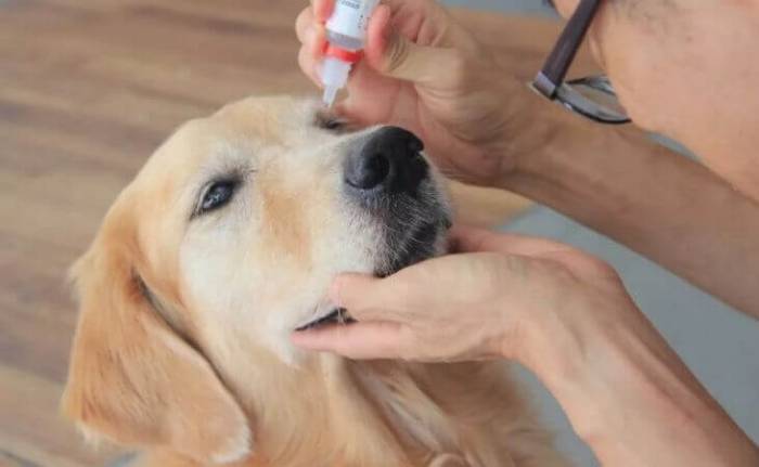 Обработку глаз необходимо проводить несколько раз в день, ориентируясь на степень загрязнения. Ветеринары часто рекомендуют использовать глазные капли для собак с противобактериальным эффектом. Тетрациклиновая мазь 1% также показывает хорошие результаты при бактериальных поражениях глаз.