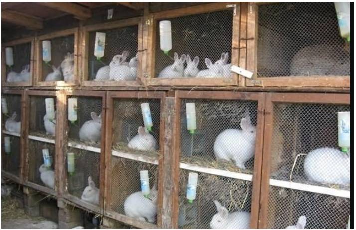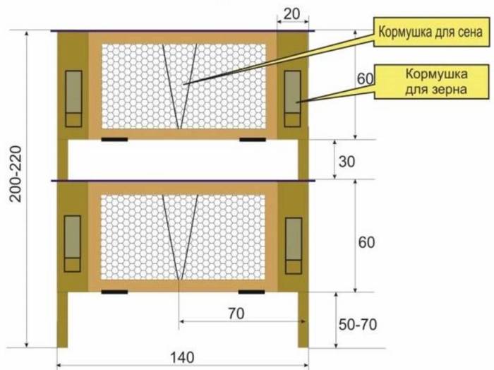 Оптимальным вариантом являются двух- и трехэтажные конструкции с клетками одинакового размера. В каждой клетке должно находиться 2-3 кролика, а размеры ячеек зависят от возраста и пола животных.