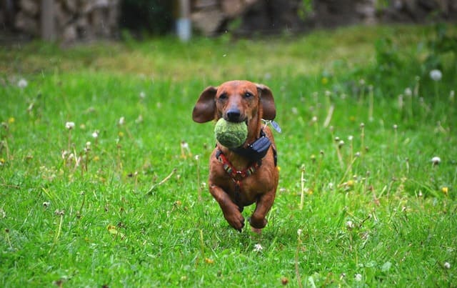 Таксам обязательно нужно давать возможность выплеснуть энергию. Они с удовольствием носятся за мячом, играют с сородичами и веселят владельцев своими ужимками. Не нужно считать, что из-за коротеньких лапок такса бегает медленно. При желании она становится настоящей торпедой!