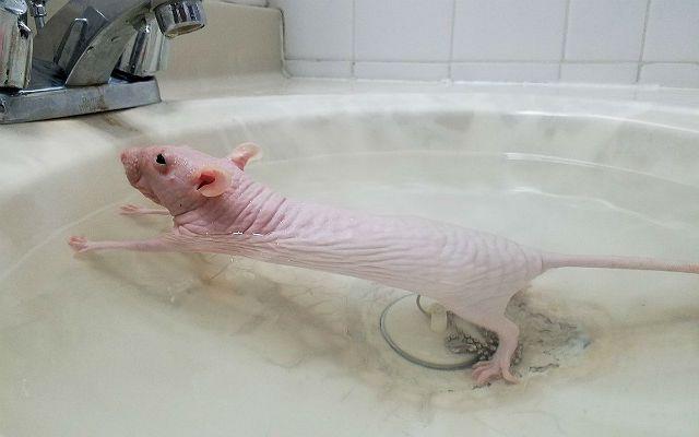 Лысые крысы обожают плавать и играть в воде. Некоторые заводчики добавляют в теплую воду для купания 2–3 капли натурального растительного масла, чтобы кожа питомцев оставалась эластичной и насыщалась токоферолами.