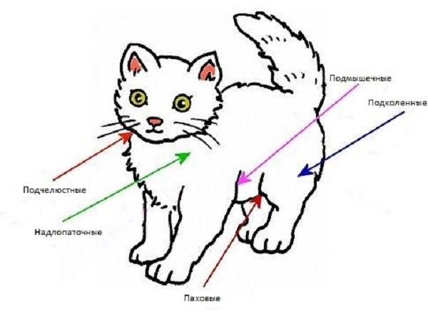 Расположение лимфоузлов у кошки