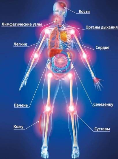 | Мультицентрическая лимфома | Увеличение нескольких групп лимфатических узлов (периферических, брюшных), спленомегалия (увеличение селезенки), гепатомегалия (увеличение печени) | Химиотерапия (часто агрессивные протоколы) |