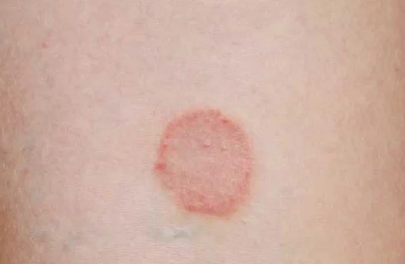 Основным признаком розового лишая является появление на коже крупного пятна розоватого оттенка. Обычно оно имеет форму овала или кольца. Внутри этого большого пятна могут возникать более мелкие участки вытянутой формы, длина которых может достигать нескольких сантиметров. Эти пятна могут вызывать зуд и быть чувствительными при прикосновении.