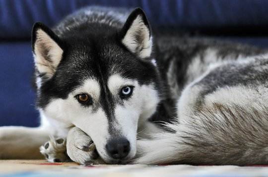 У хаски могут быть голубые глаза, карие глаза, по одному или даже разноцветные глаза. Довольно редко можно увидеть сибирского хаски с одним глазом голубым, а другой коричневым, и еще реже можно увидеть хаски, у которого один или оба из них окрашены как в синий, так и в коричневый цвет. Конечно, все знают их по их ярким голубым глазам, но отсутствие их не является неприемлемым по стандартам породы.