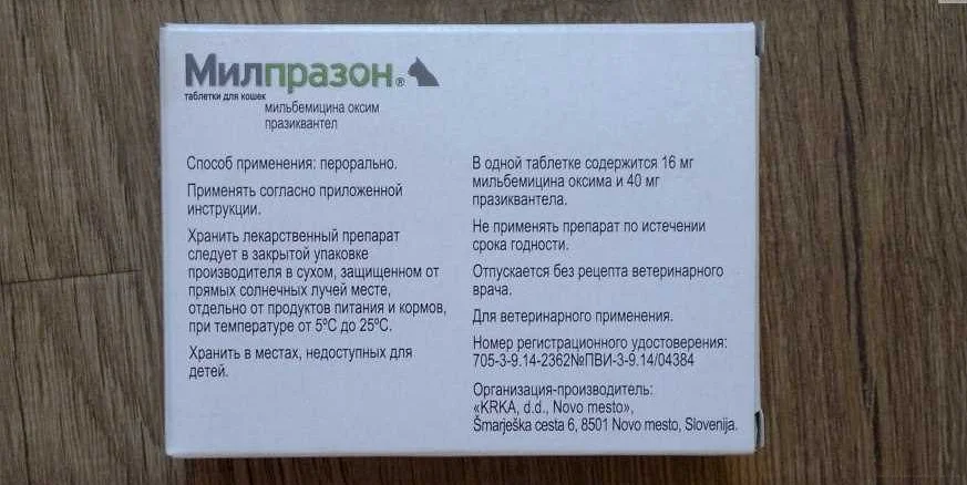 Милпразон — комбинированный препарат, обладающий обширным антипаразитарным спектром, производится словенской компанией КРКА (ООО КРКА d.d.Novo Mesto).
