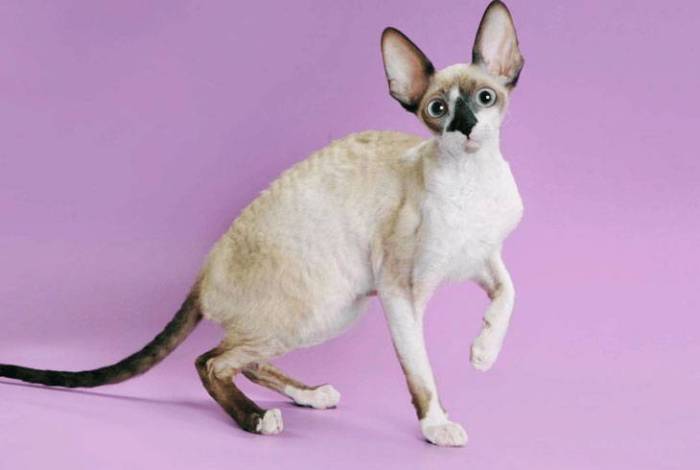 Порода кудрявых кошек родом из графства Девоншир отличается не только огромными круглыми глазами, но и достаточно эксцентричной внешностью — голова в форме треугольника, венчающаяся большими ушами, крепкое, мускулистое телосложение, и конечно же нежная волнистая шёрстка.