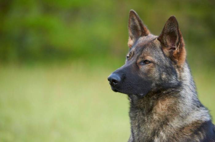 Немецкая овчарка занимает почетное место в нашем рейтинге. Она отличается мужественным и строгим обликом. Здесь все предельно просто и лаконично. В ее внешности нет ничего излишнего, что и должно быть у настоящей служебной собаки.