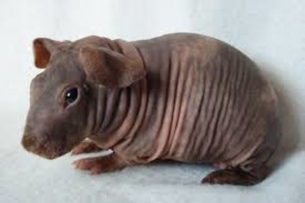 Безшерстная порода: Морские свинки Скинни отличаются отсутствием шерсти, что делает их уникальными среди других пород. У них есть небольшие участки с волосами, например, на мордочке, лапках и спине, но в целом их кожа голая. Это требует особого ухода, так как их кожа более подвержена солнечным ожогам и переохлаждению.